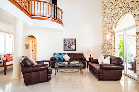 Spacious open-plan living and dining areas cooled by ceiling fans and island breezes
